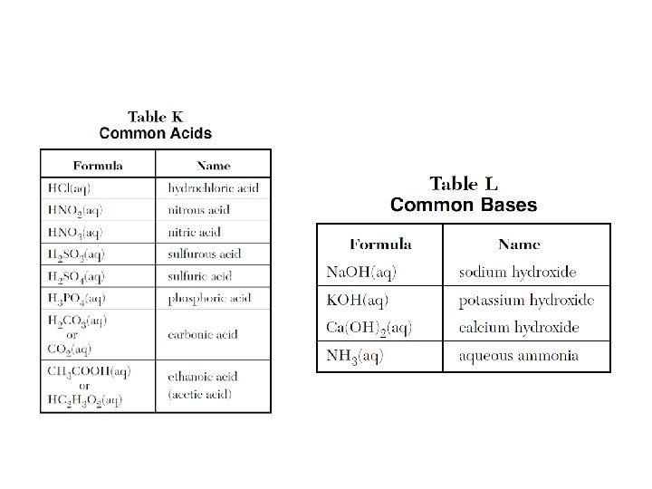 PACKET #10: Acids, Bases, & Salts • Acids – Arrhenius acid has H+/H 3 O+ (Table K) an electrolyte, litmus turns red, phenolphthalein colorless. p. H less than 7. Reacts with certain metals (Table J). Don’t forget –COOH. • Bases – Arrhenius base has OH- (Table L) an electrolyte, litmus turns blus, phenolphthalein pink. p. H greater than 7. Don’t be tricked, by an alcohol CH 3 OH. • BAAD – bases accept/acids donate H+(also called protons) • Neutralization Reactions: