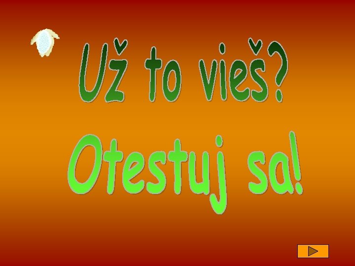 Klikni na tlačidlo s odpoveďou ÁNO BLAHOŽELÁM! NIE Nesmúť! Verím, že keď si prezrieš celú prezentáciu ešte raz. . . URČITE USPEJEŠ! DRŽÍM TI PALCE!