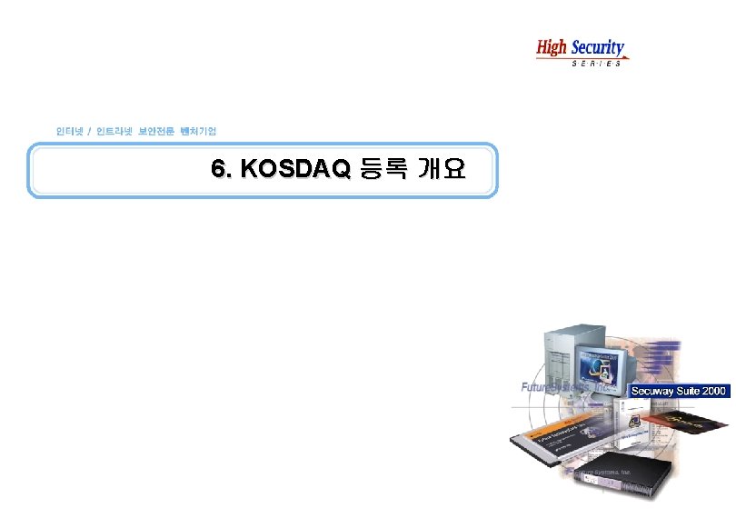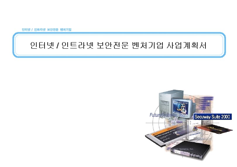 사업현황 및 전망 전문가들이 선정한 6대 보안기술 Virtual Private Network (VPN) 암호기술을 이용한 Public Key Infrastructure (PKI) Protection / Prevention Firewall (FW) 불특정 다수의 인터넷 사용자로부터 Vulnerability Assessment Tool (VAT) 네트웍 인프라를 보호하기 위한 Antivirus Software (AV) Detection & Correction 기반의 보안기술 Intrusion Detection System (IDS) Page 26