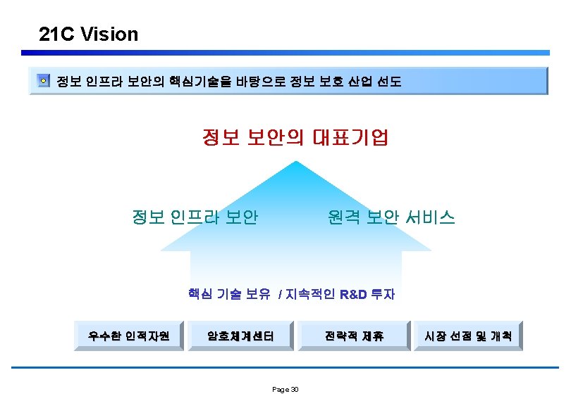 사업현황 및 전망 Security Processes § Security is a Process, not a Solution reassessment, countermeasures Prevention Various security measures Detection Monitoring Analysis - No perfect security ⇒ Importance of monitoring & responding Page 25 Correction Timely responding incident handling