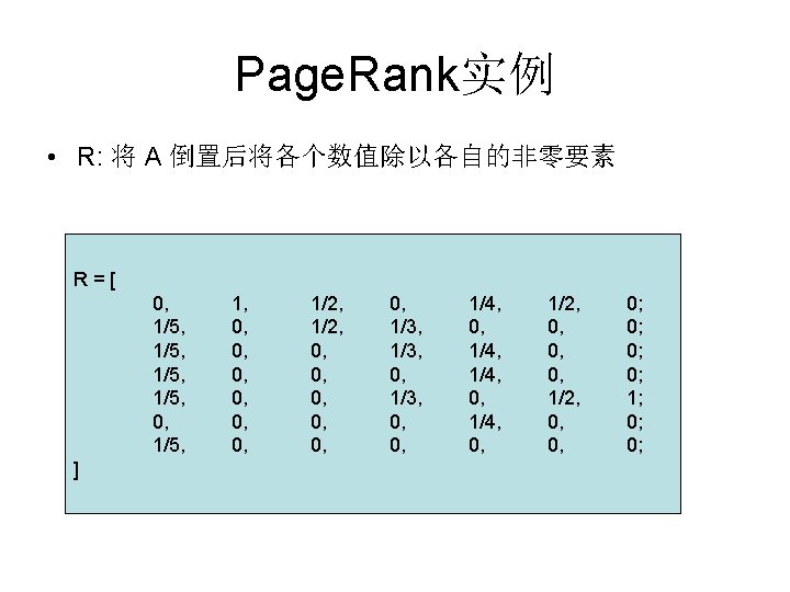 ![Page. Rank实例 A=[ ] 1, 2, 3, 4, 5, 6, 7 0, 1, 1, Page. Rank实例 A=[ ] 1, 2, 3, 4, 5, 6, 7 0, 1, 1,](https://slidetodoc.com/presentation_image_h2/00c4b02d2a4066e70c476cbe40d2391d/image-11.jpg)