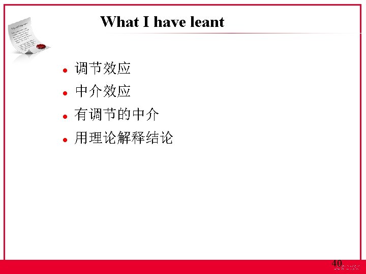 Discussion and conclusions Limitation l Further longitudinal studies l A convenience sample, rather than a random one, and sample size was relatively small. l Although NH and community participants were similar in gender and educational level, participants in the NH sample were older. (moderated mediation analyses) l we measured depressive symptomatology, but not the presence of major depression. 39 MEDICAL
