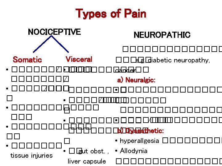 Cancer Pain • Recurrent acute pain • ��������� �������� • ���� chronic pain ��� • ��������� nocciceptive, neuropathic, visceral pain