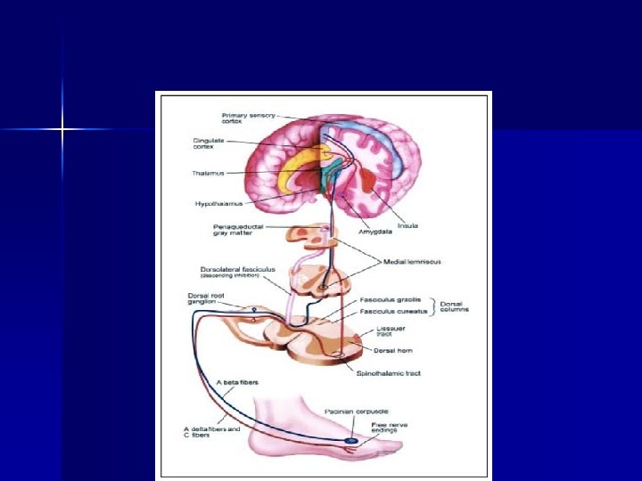 Consequences of Untreated Pain n Acute pain: – increase metabolic rate and blood clotting, – impair immune function – induce negative emotions n Without intervention, pain receptors become sensitive and may have long lasting changes in the neurons