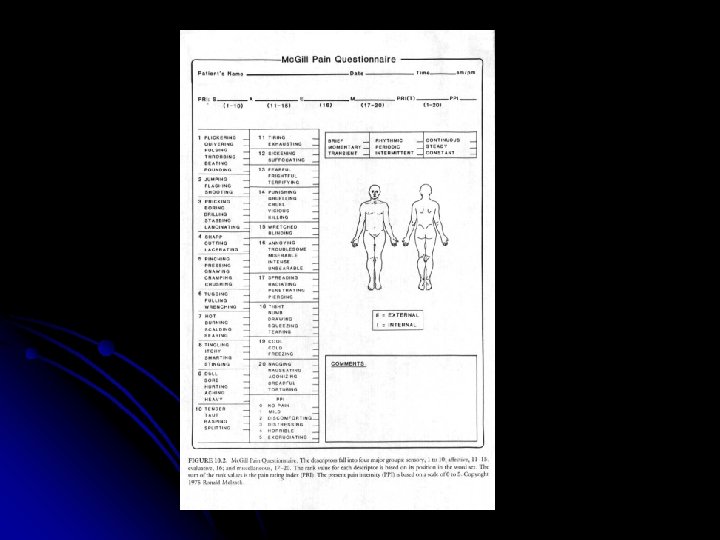 Composite Pain Scales l Attempt to measure one or more dimensions of the pain experience