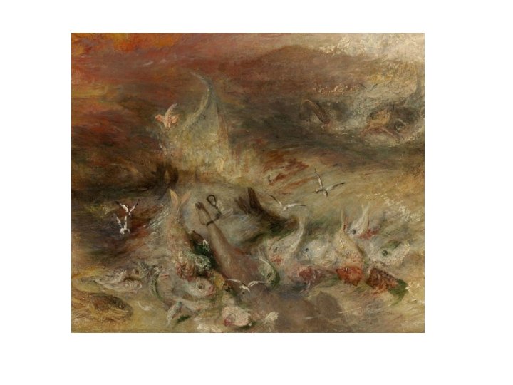 J. M. W. Turner The Slave Ship, 1840. Oil on Canvas. 35 in. X 4 ft. 1/4 in The sea becomes his main subject, as the source of nature’s indomitable power He exploits the romantic notion of the supremacy of sensation, intuition of the individual, his expanding and contracting forms parallel the contrasts in dynamics and mood of the romanticism of Beethoven.