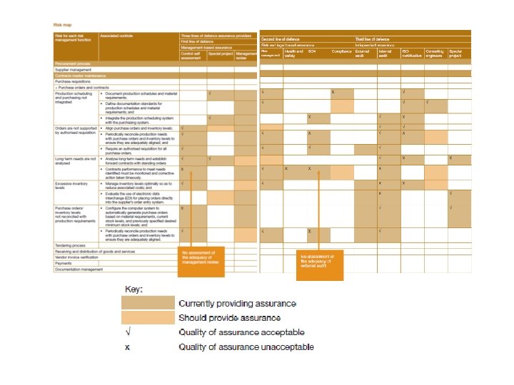Top business risks Assurance providers Combined Key control assurance activities matrix Key assurance activities Key control activities