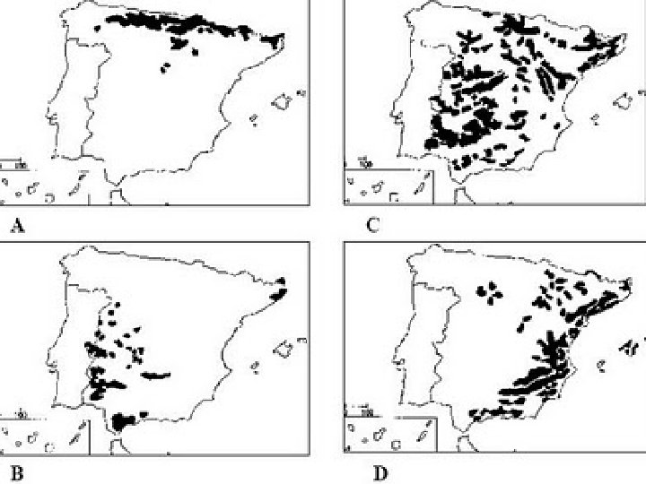LOCALIZACIÓN SUELOS INTERIOR PENÍNSULA PAISAJE ESP. MEDITERR ANEA PAISAJE CANARIO LITORAL MEDITERRANEO COSTA ATLÁNTICA ANDALUZA CLIMA VEGETACIÓN PERENNE Encina, alcornoque, pino Calizos y MEDITER RANEO INTERIOR Plantas aromaticas, aliagas LITORAL espinosas, garriga ÁRIDO Estepa y plantas xerófilas