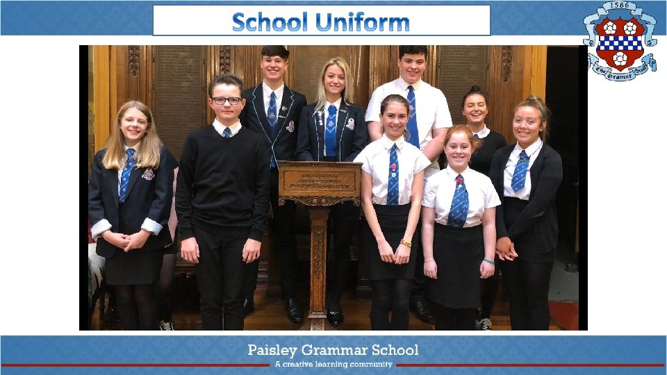 • At Paisley Grammar School we actively encourage pupils to wear our agreed uniform, including a blazer • Academy Uniforms will be in contact with the school in due course regarding the ordering of school blazers. This information will be shared with you as soon as we receive further information. Academy Uniforms can be contacted directly via their website; • https: //www. academyuniformsltd. co. uk • Please note however, that blazers can be purchased from other suppliers.
