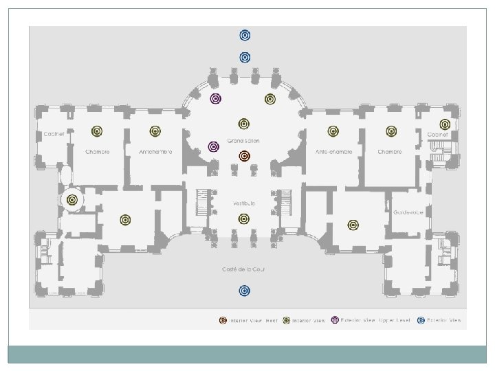 ANÁLISIS FORMAL �PLANTA: El palacio se compone de un espacio central, marcado por un gran salón ovalado (19 m largo x 18 m ancho) que conecta dos alas laterales alargadas divididas por habitaciones (appartaments) comunicadas. Delante del salón está el vestíbulo conectada a otras dos alas dispuestas en formas de “X”. La estructura arquitectónica se complementa con el diseño de planta urbana del jardín, diseñado por el arquitecto Le Nôtre, el cual se dispone, entorno a un eje central simétrico, En parterres y fuentes.