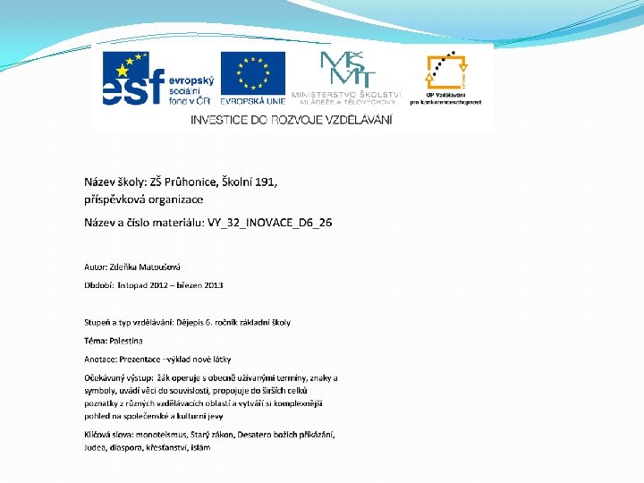 �http: //cs. wikipedia. org/wiki/Star%C 3%BD_z%C 3%A 1 kon �http: //history-if. blog. cz/0901/starovek-fenicie-a-izrael �http: //david-martin. blog. cz/1008/kdo-to-byl-kral-david �http: //www. zidovskehrbitovy. cz/index. php? id_cat=111&ne w=2106 �http: //www. info-tour. info/izrael/historie 1. htm �http: //www. pbs. org/wgbh/pages/frontline/shows/religion /maps/jewish. html �V. Válková: Dějepis 6, Pravěk a starověk, SPN Praha 2006