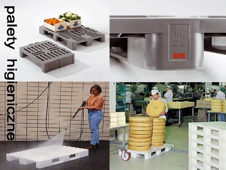 styropaleta • niska waga 4 – 5 kg przy ładowności do 1000 kg • gładka, zmywalna powierzchnia • stosowanie w obszarach higienicznych, mają atest PZH • łatwy recykling np. w Niemczech producent je odkupuje • świetnie sprawdzają się w branży spożywczej, elektronicznej i farmaceutycznej