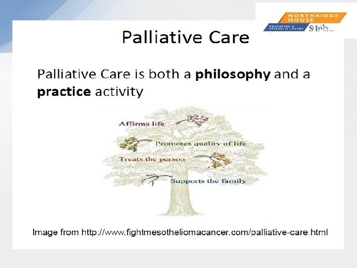 What is a Palliative Care Approach? § Recognises that death is inevitable § Provides opportunities for the person to make plans and set goals about their care § Includes the family, should the person wish, to be involved in planning for their care § Maximises the persons full potential and quality of life as defined by them