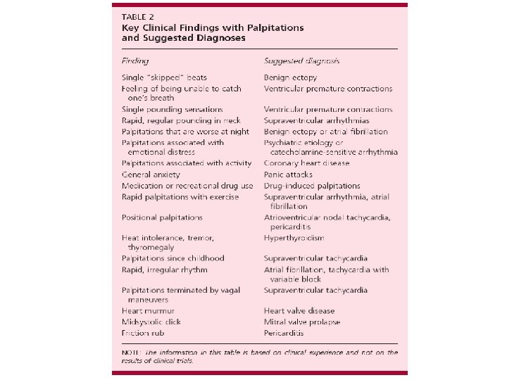 Spectrum of Patients’ Descriptions • • • Heart flips or flip-flops Skipped beats Strong beats Irregular beats Heart thumping Bubble sensation in heart or chest Racing or rapid heart beats Pounding in neck or chest Heart jumping out of chest Chest or whole body shaking