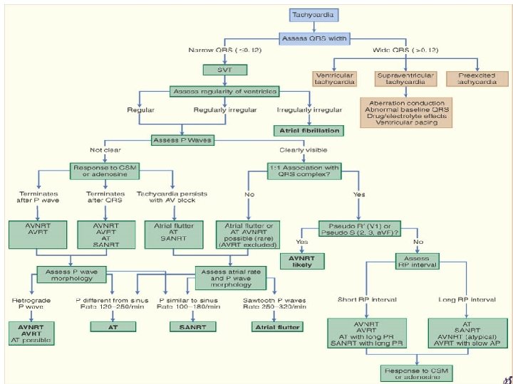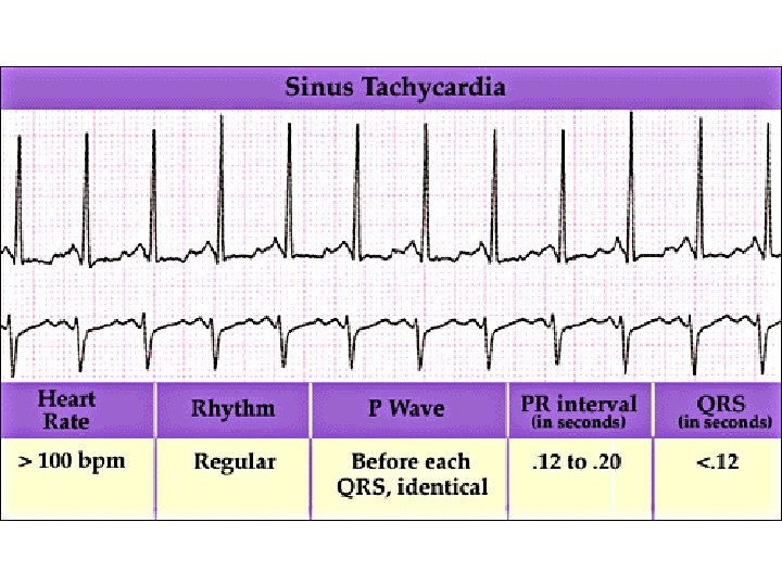 Is patient stable or unstable? • Patient has serious signs or symptoms? Look for – Chest pain (ischemic? possible ACS? ) – Shortness of breath (lungs ‘wet’? possible CHF? ) – Hypotension – Decreased level of consciousness • (poor cerebral perfusion? ) – Clinical shock • (cool and clammy -- peripheral vaso-constriction? ) • Are the signs & symptoms due to the rapid heart rate? • Or are S/Sx’s & rapid HR due to something else? – I. e. , is it sinus tach due to sepsis, hemorrhage, PE, tamponade, dehydration, etc.