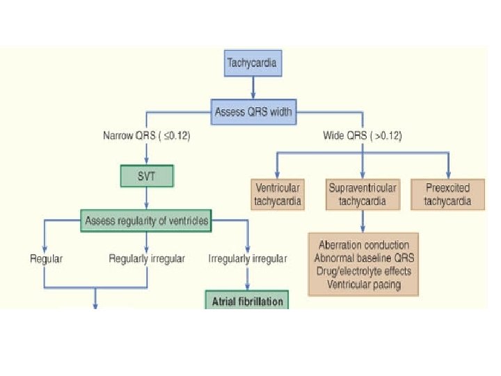 Clinical Clues: for Regular Wide QRS Tachycardia • History of heart disease, especially prior MI suggests VT • Occurrence in a young patient with no known heart disease SVT • 12 -lead EKG (if patient stable) should be obtained