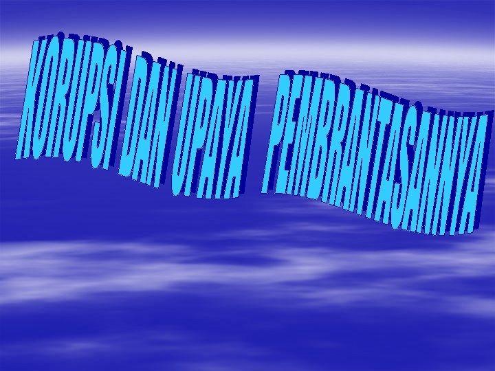 UPAYA PEMBRANTASAN KORUPSI DILAKUKAN ANTARA LAIN § 1. Peningkatan pengawasan yang ketat oleh masyarakat, misalnya : Lewat Kotak pos Pengaduan. § 2. Instrumen pembrantasan dan pencegahan berupa perturan perundangan § 3. Lembaga –lembaga pengawasan mis : DPR, DPRD, BPKP, dan BPK § 4. Lembaga pengawasan Independen mis: KPK, LSM § 5. Lembaga Penegak Hukum meliputi Polisi, Jaksa, Hakim
