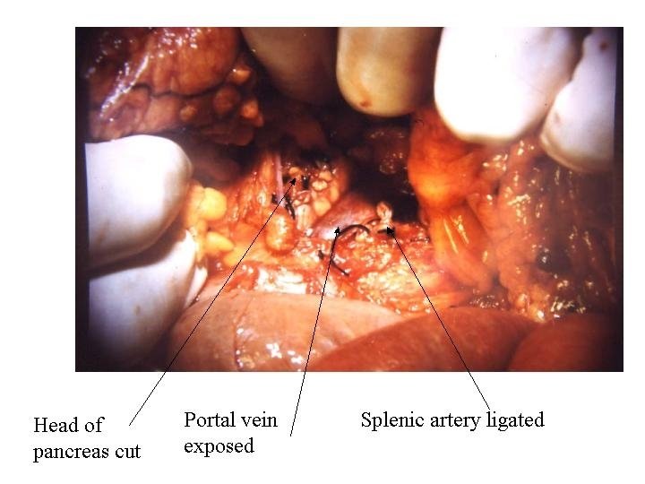 Whipple's operation Involves a pancreatico-duodenal resection Initial assessment of resectability by n n dissection and Kocherization of the duodenum, with, most importantly a finger passing easily anterior to the superior mesenteric portal vein axis behind the neck of the pancreas. Head of pancreas and duodenum excised followed by: n n n End to side pancreaticojejunostomy End to side hepaticojejunostomy Gastroojejunostomy