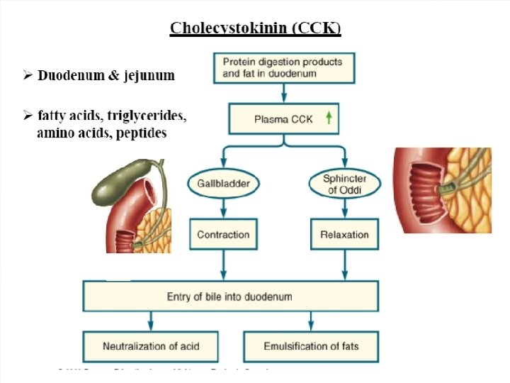 Intestinal. (65%) Secretin & CCK-PZ. Gastrin & VIP Presence of food, HCl in the small intestine. Mechanical distention & chemical components.