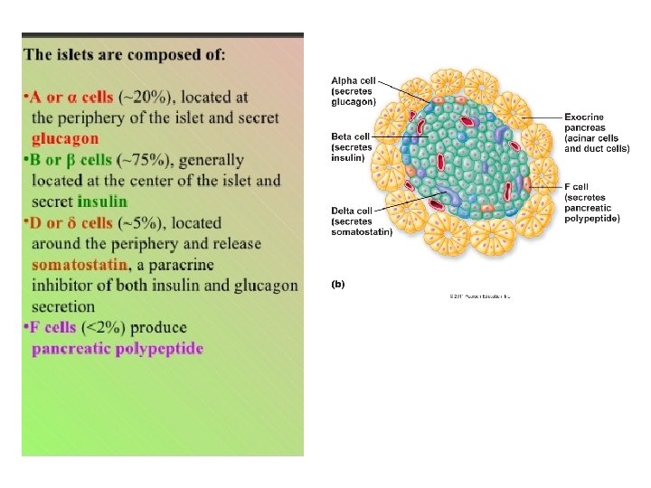 Pancreatic Polypeptide (PP) is a 36 amino acid peptide v PP secreted by F cells & belongs to the family of PYY & NPY peptides. v PP has effects on GI motility, metabolism and food intake and is stimulated by vagus nerve. v Acts as satiety factor, PP secretion is absent in obese children with Prader‐Willi syndrome. v Its primary action on the exocrine pancreas is to inhibit secretion in vivo by acting on receptors in the brain leading to inhibition of vagal output to the pancreas.