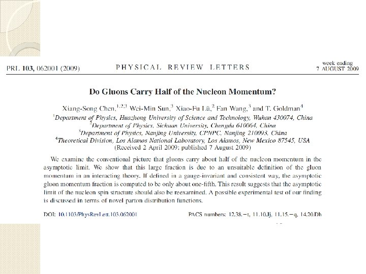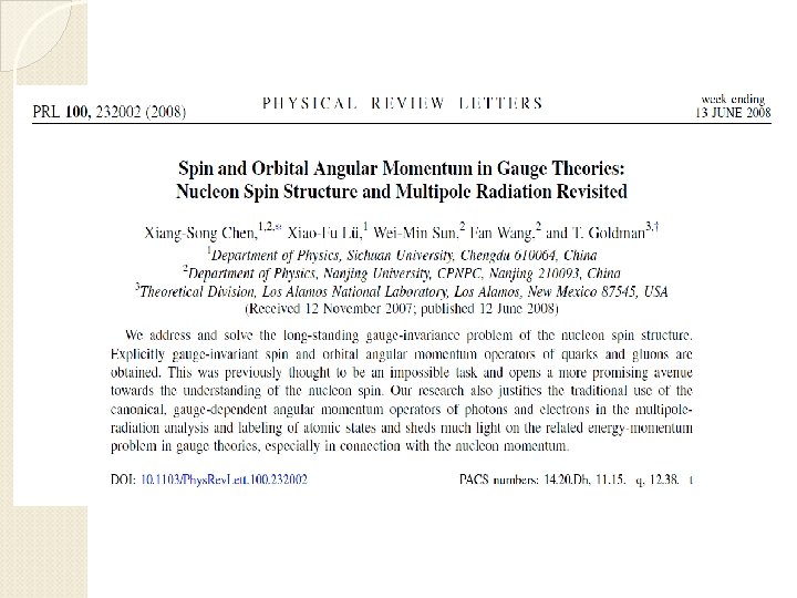 New gauge symmetry? About 10 years ago, Wang et al have started questioning gauge symmetry in textbooks. This campaign has changed its forms many times with the unchanging goal of justifying using gauge-variant operators. It is culminated with two PRL articles Xiang-Song Chen, (Sichuan U. & Nanjing U. ) , Xiao-Fu Lu, (Sichuan U. ) , Wei-Min Sun, Fan Wang, (Nanjing U. ) , T. Goldman, (Los Alamos). Phys. Rev. Lett. 100: 232002, 2008. Xiang-Song Chen, (Hua-Zhong U. Sci. Tech. & Sichuan U. & Nanjing U. ) , Wei-Min Sun, (Nanjing U. ) , Xiao-Fu Lu, (Sichuan U. ) , Fan Wang, (Nanjing U. ) , T. Goldman, (Los Alamos) Phys. Rev. Lett. 103: 062001, 2009. Then all hell break loose….