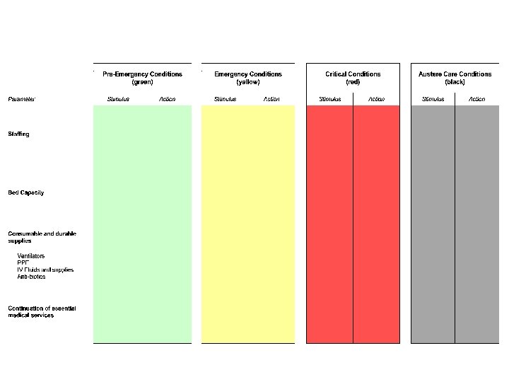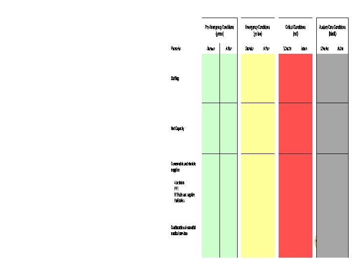 Continuation of Essential Medical Services • HHS Plan does not have much detail! • Green, Yellow, Red, Black