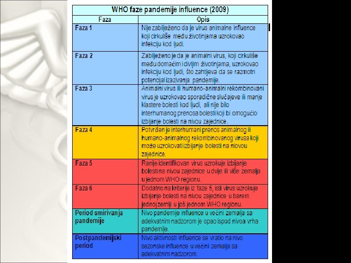 Šta je pandemija? • Pandemija influence (gripa) se dešava kada se novi virus influnce pojavi i proširi na sve kontinente, a većina ljudi nema razvijen imunitet na taj novi virus • • • izvan uobičajene sezone, izuzetno brz prenos bolesti, postojanje istovremenih epidemija u cijelom svijetu, visoka stopa oboljevanja stanovništva svih starosnih grupa prati je visoka stopa umiranja čak i kod mlađih odraslih zdravih osoba