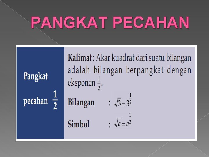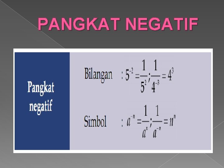 PENGERTIAN PANGKAT POSITIF PANGKAT NEGATIF PANGKAT NOL PANGKAT PECAHAN INFORMASI RANGKUMAN EVALUASI