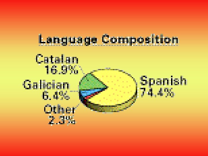 Jazykové zloženie Kastílčina- 74% Katalánčina- 16% Galícština- 8% Baskitština- 2% Náboženstvá Rímskokatolícke- 99% Ostatné- 1%