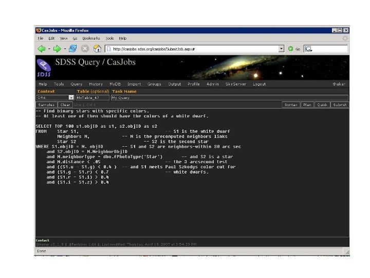Existing Components (from SDSS) The prototype will utilize the following existing SDSS components: – – Data Loading Pipeline (sql. Loader) Self-extracting Documentation & Diagnostics SQL Query Workbench (Cas. Jobs) Spatial Library (Spherical/HTM)