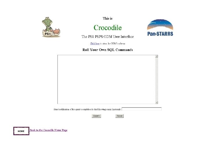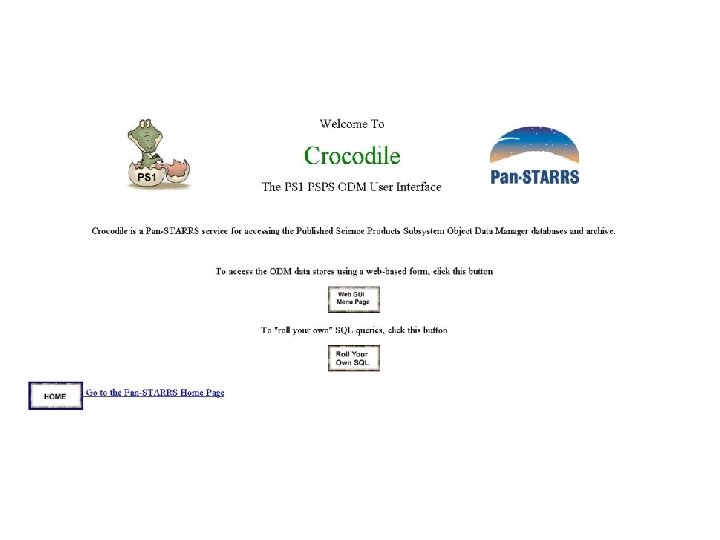 PSPS Development Status • WBI - Web clients to access the ODM and SSDM will include those already developed for the MOPS, the “Gator” clone developed at If. A, and a port of the SDSS “Cas. Jobs” client. These will use the new DRL API being developed in the lead item above. • End-to-end testing of the PSPS structure can be accomplished using the DRL, the ported MOPS web client, and a MOPS clone on the backend. This can be done while the ODM is still under development.