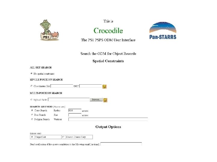 What is PSPS? • Web Based Interface (WBI) – the “link” with the human • Data Retrieval Layer (DRL) – the “gatekeeper” of the data collections • PS 1 data collection managers Human Other S/W Client WBI – Object Data Manager (ODM) – Solar System Data Manager (SSDM) • Provide the connection protocol for other (future/PS 4) data collection managers; e. g. , DRL ODM SSDM IPP MOPS Other DM – – “Postage stamp” cutouts Complete Metadatabase Cumulative sky image server Filtered transient database (and other special clients)