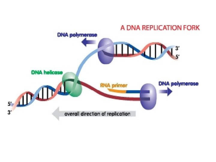 DNA Replication • The overall direction of adding nucleotides is toward the replication fork – goes from 5’ to 3’