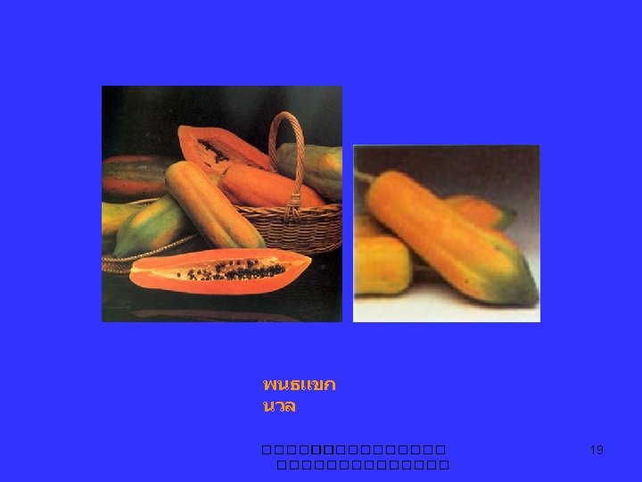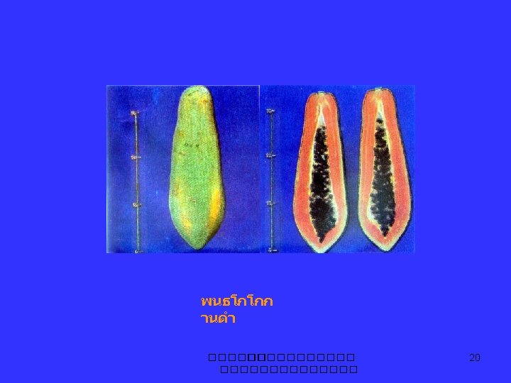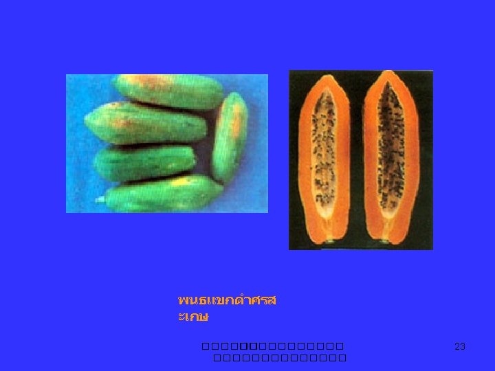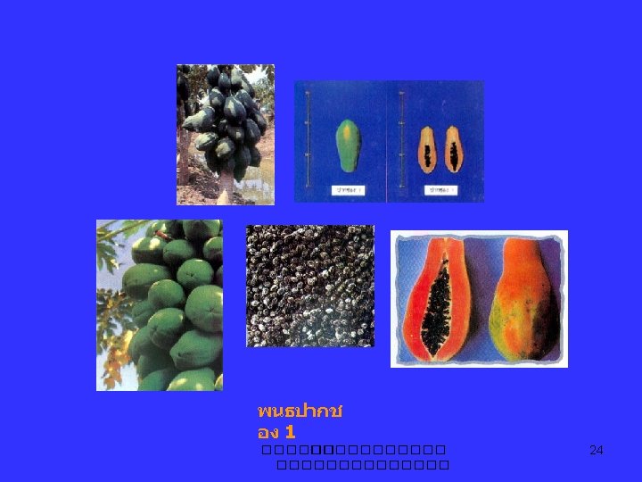 มะละกอ papaya Carica papaya L. Caricaceae C. candicans, C. chrysophila C. pentagyna, C. cundinamarcensis Jacaratia mexicana, Jarilla caudata ����������� 2