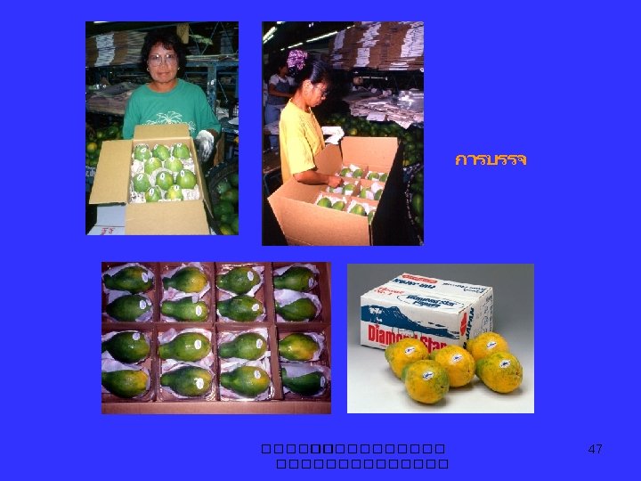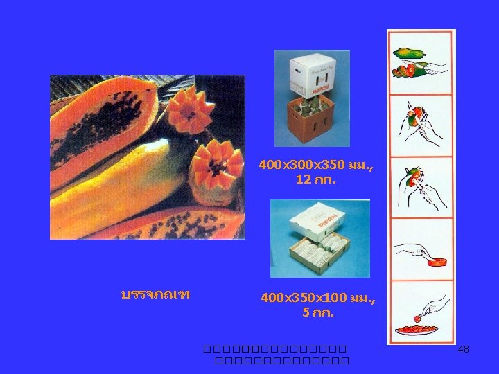 Harvesting - transplant Oct. – Nov. - harvest June - Oct. - young fruit 500 -700 g - mature fruit ≥ 1. 5 kg - yield 30 -50 kg/pl 5, 400 -9000 kg/rai - production 2 -3 yrs. ……. 10 yrs. ����������� 43