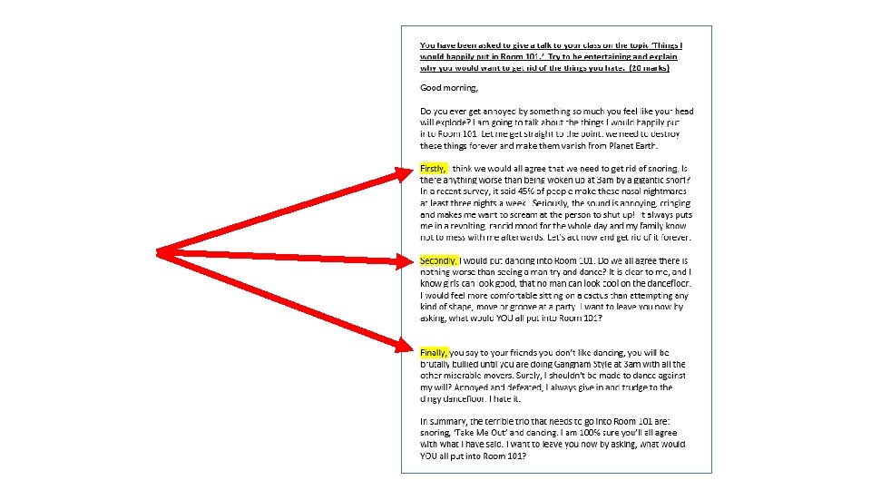 Want to gain easy marks? Use these words to begin your central paragraphs