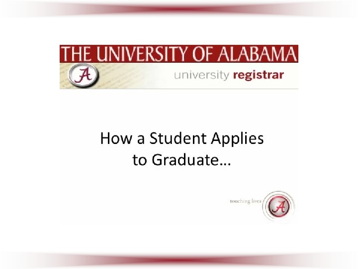 Questions? Leana Wilson Leana. Wilson@ua. edu 205 -348 -8179 Denny Savage Denny. Savage@ua. edu 205 -348 -0261 registrar. ua. edu