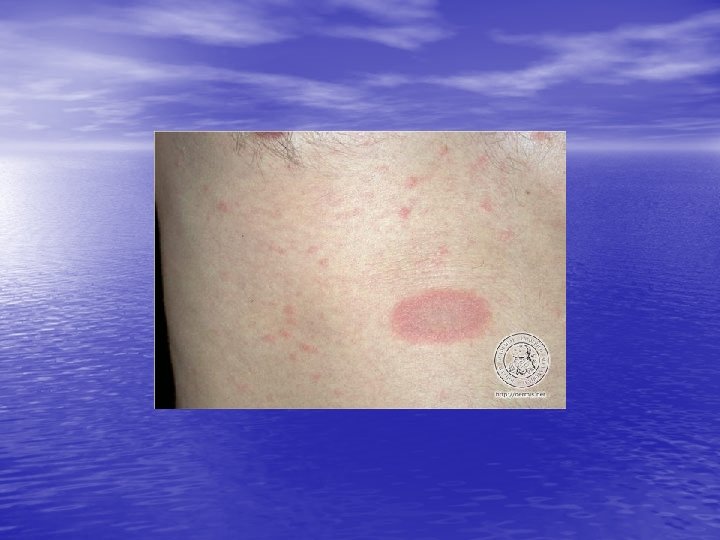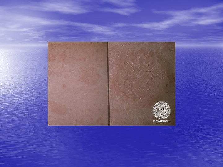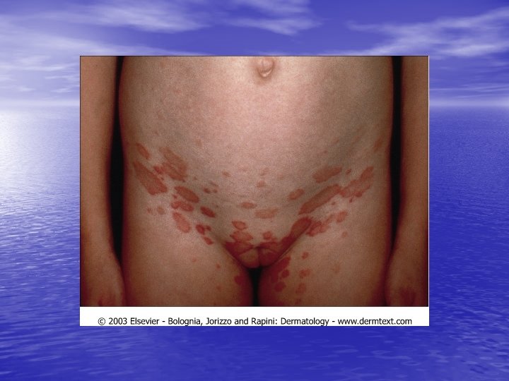 • Differential diagnosis: Drug eruptions( e. g. , captopril, barbiturates), secondary syphilis, , guttate psoriasis, tinea corporis, erythema multiforme. • Course: Spontaneous remission in 6 to 12 weeks or less. Recurrences are uncommon. • Management: Mainly symptomatic. Oral antihistamines and/or topical antipruritic lotions, topical glucocorticoids, UVB phototherapy or natural sunlight, short course of systemic glucocorticoids.