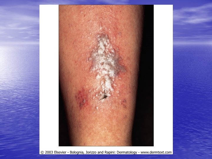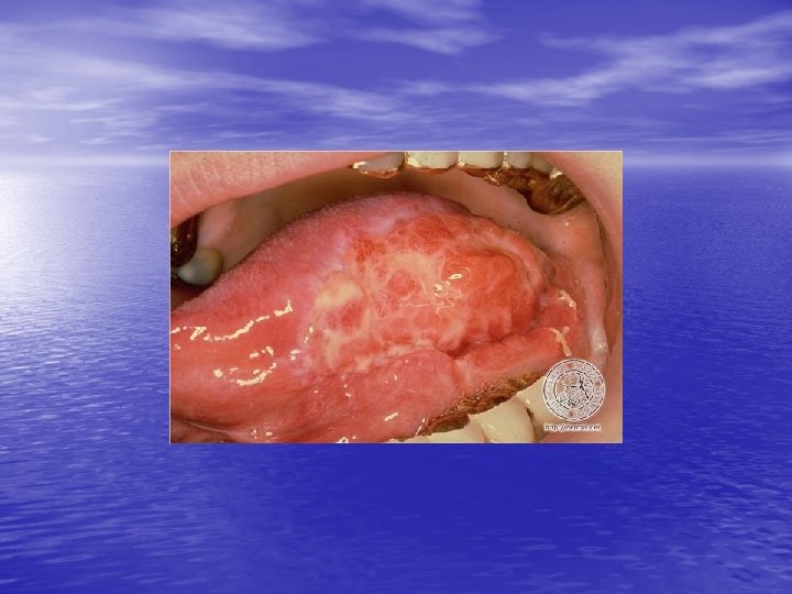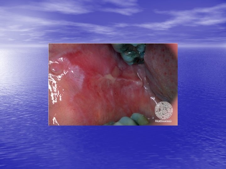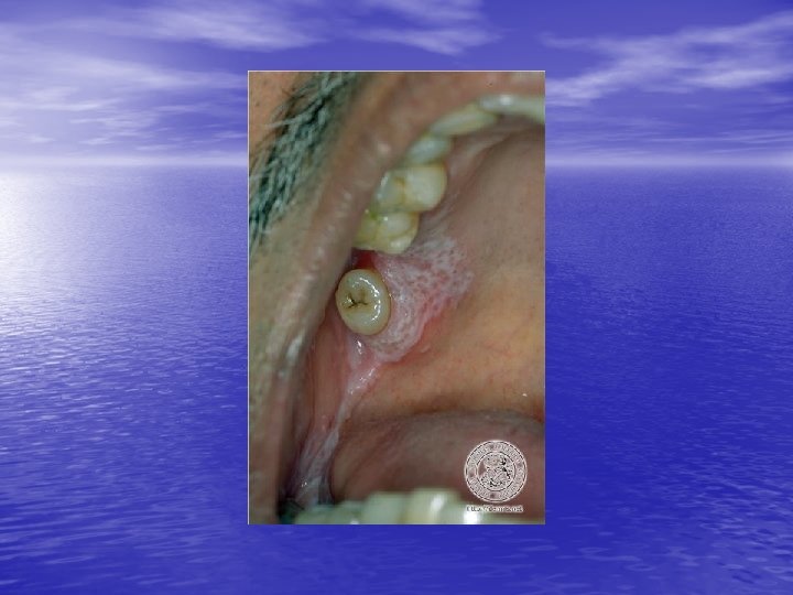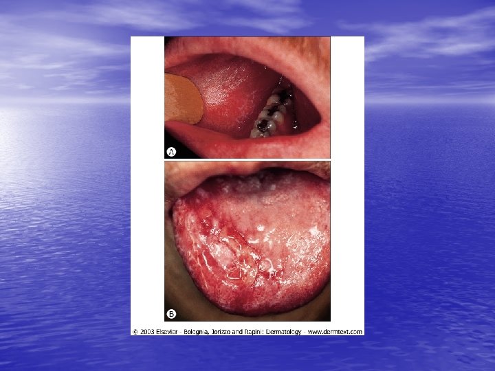 Epidemiology and etiology • • Age of onset: 30 to 60 years, females = males Race: Hypertrophic LP more common in blacks, linear LP mor common in children. Lichenoid tissue reaction !: Vacuolar alteration of the epidermal basal cells (interface dermatitis) + band-like infiltrate of primarily lymphocytes in the papillary dermis. Etiology: Idiopathic in most cases but cell-mediated immunity (keratinocyte apoptosis) plays a major role. Drugs, metals (gold, mercury), or infection ( HCV ). Exposure to a number of exogenous agents ( viruses, medications, contact allergens) Hepatitis-associated LP: HCV (%1. 6 -%20), HBV immunization, primary biliary cirrhosis %0. 4 - %5 (%1 -2) of patients with oral - erosive or ulcerative - LP will develop oral SCC.