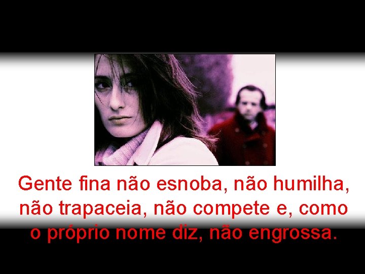 Gente fina não esnoba, não humilha, não trapaceia, não compete e, como o próprio nome diz, não engrossa.