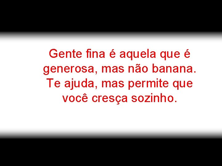 Gente fina é aquela que é generosa, mas não banana. Te ajuda, mas permite que você cresça sozinho.