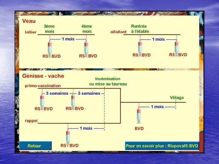 Bibliographie • • Cours de 1 er doctorat de Génétique quantitative Le Veau Pathologie – P. Mornet, J. Espinasse Maladies Virales des Bovins - Etienne Thiry Maladies des Bovins – Institut de l’élevage Pathologie respiratoire des Bovins - Recueil de Médecine Vétérinaire (décembre 1985) Bulletin des GTV numero spécial IBR Novembre 1997 - n° 4 CD Rom Pfizer santé animale « situation du BVD en 1995 » • http: //www. livestock. novartis. com/diseases_respir_beef. html • http: //www. canadianveterinarians. net/vetjournals/cvj/contents 00/jan_toc • • • 00. htm#bovine http: //www. admin. ch/cp/f/3 bb 19538_1@fwsrvg. bfi. admin. ch. html http: //www. bvet. admin. ch/news/magazin/00018/? download=00065_fr. p df http: //www. mycattle. com/health/updates/brdnlac. cmfhttp: //www. admin. ch/cp/f/3 bb 19538_1@fwsrvg. bfi. admin. ch. html