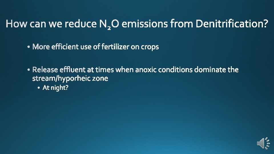 f of ag 3 ric fro ul m tu ra lr un NO Labile Carbon and NO 3 from treated wastewater Complete Denitrification Process, <0. 5 mg Oxygen/L: NO 3 - NO 2 - NO + N 2 O N 2 Redox Rxn: 2 NO 3− + 10 e− + 12 H+ → N 2 + 6 H 2 O