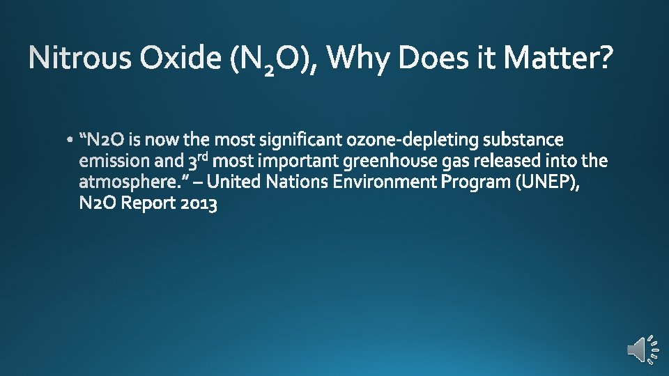 Agriculture: 73%, 17% from Nitrate runoff Wastewater: 3% UNEP 2013 N 2 O Report