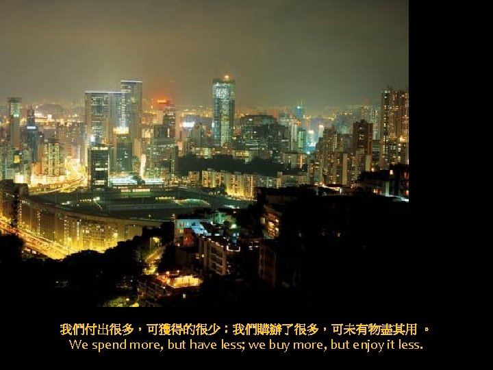 我們的閒暇多了,樂趣卻少了;食品種類多了,營養卻少了; More leisure and less fun; More kinds of food, but less nutrition;