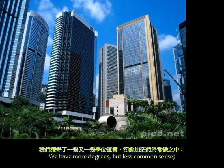 我們的住房越來越高,脾氣卻越來越糟; We have taller buildings, but shorter tempers;