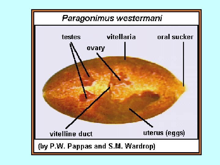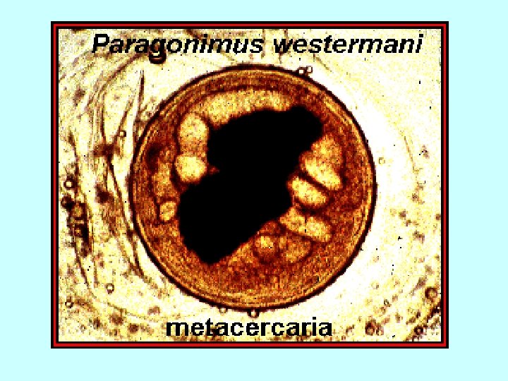 A young paragonimus hatching out of a metacercaria. This usually takes place in the duodenum of the animal host. Interference contrast.