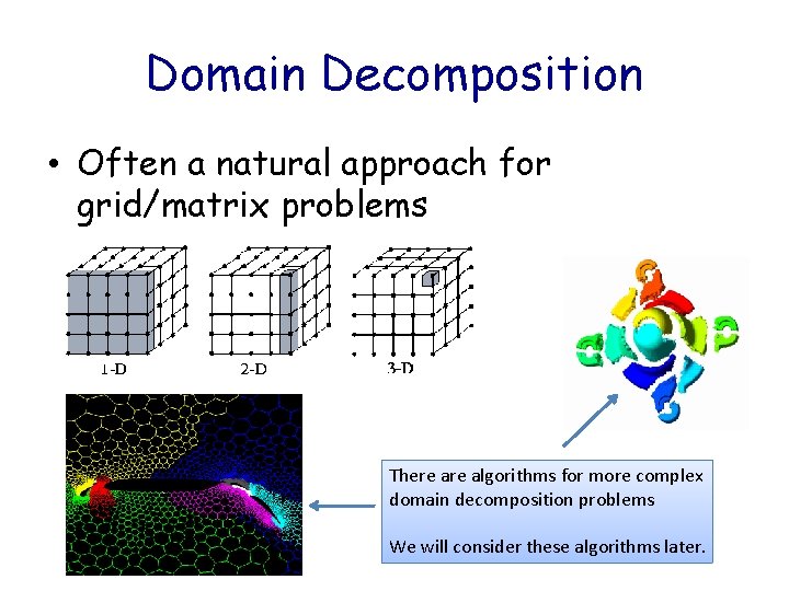 Domain Decomposition • Often a natural approach for grid/matrix problems There algorithms for more complex domain decomposition problems We will consider these algorithms later.