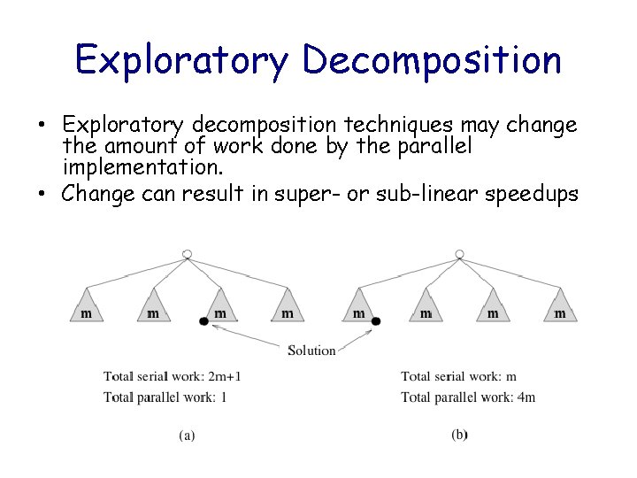 Exploratory Decomposition • Exploratory decomposition techniques may change the amount of work done by the parallel implementation. • Change can result in super- or sub-linear speedups
