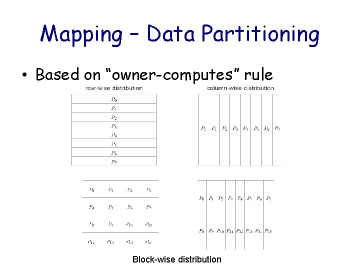 Mapping – Data Partitioning • Based on “owner-computes” rule Block-wise distribution